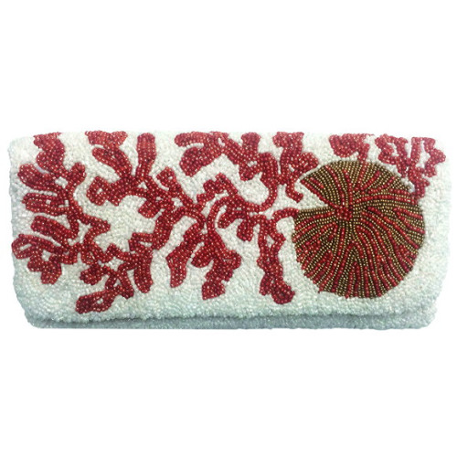 Beaded Sea Print Fold Over Clutch