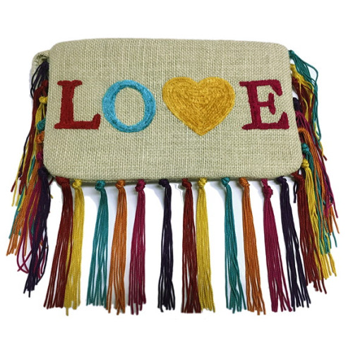 Jute Monogrammed Envelope Clutch