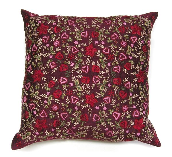 Features: Silk Pillow with Intricate Flower Embroidery