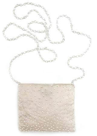 Features: Inside Pocket, Magnetic Snap-Tap Closure, Beaded Chain Shoulder Strap