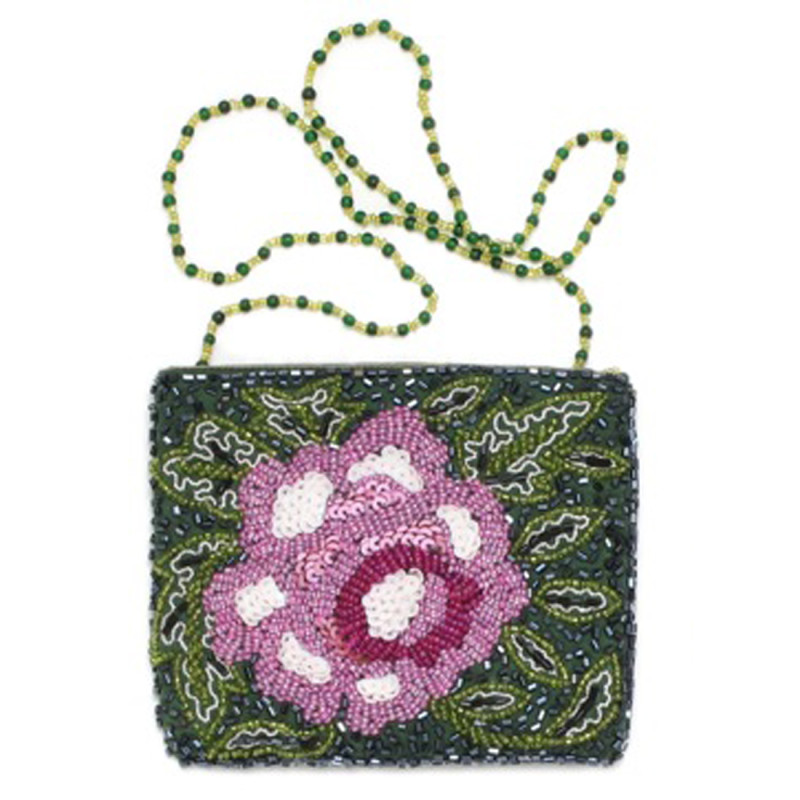 Features: Inside Pocket, Magnetic Snap-Tap Closure, Beaded Chain Shoulder Strap