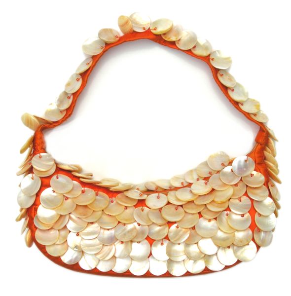 Hand Beaded on Silk Fabric with Mother of Pearl Embellishment