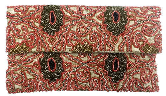 Burlap Clutch Beaded Abstract